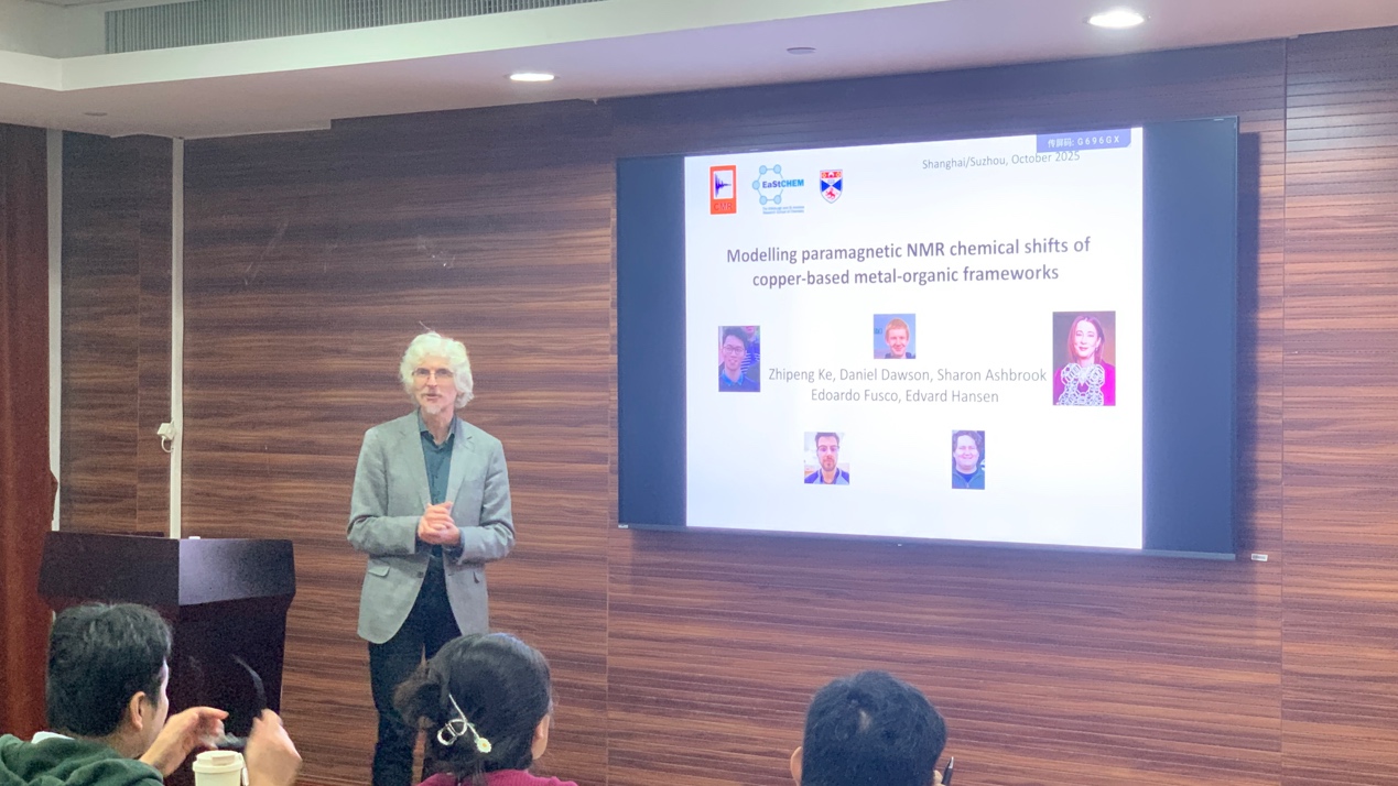Michael Bühl教授围绕顺磁性核磁共振计算展开论述。他先清晰阐释该方法的定义,为后续内容铺垫理论基础;接着结合其在金属有机框架(MOFs)结构解析中的关键应用,凸显技术价值。随后,他深入分析铜基 MOFs 体系中电子自旋耦合作用复杂的问题——这类问题给理论计算带来多重挑战。此外,Michael Bühl教授还详细说明,其团队研发的计算方法,能有效解释 MOFs 框架的核磁共振屏蔽常数的温度依赖,并且框架结构中相互作用的物理意义,为材料研究提供理论支撑。