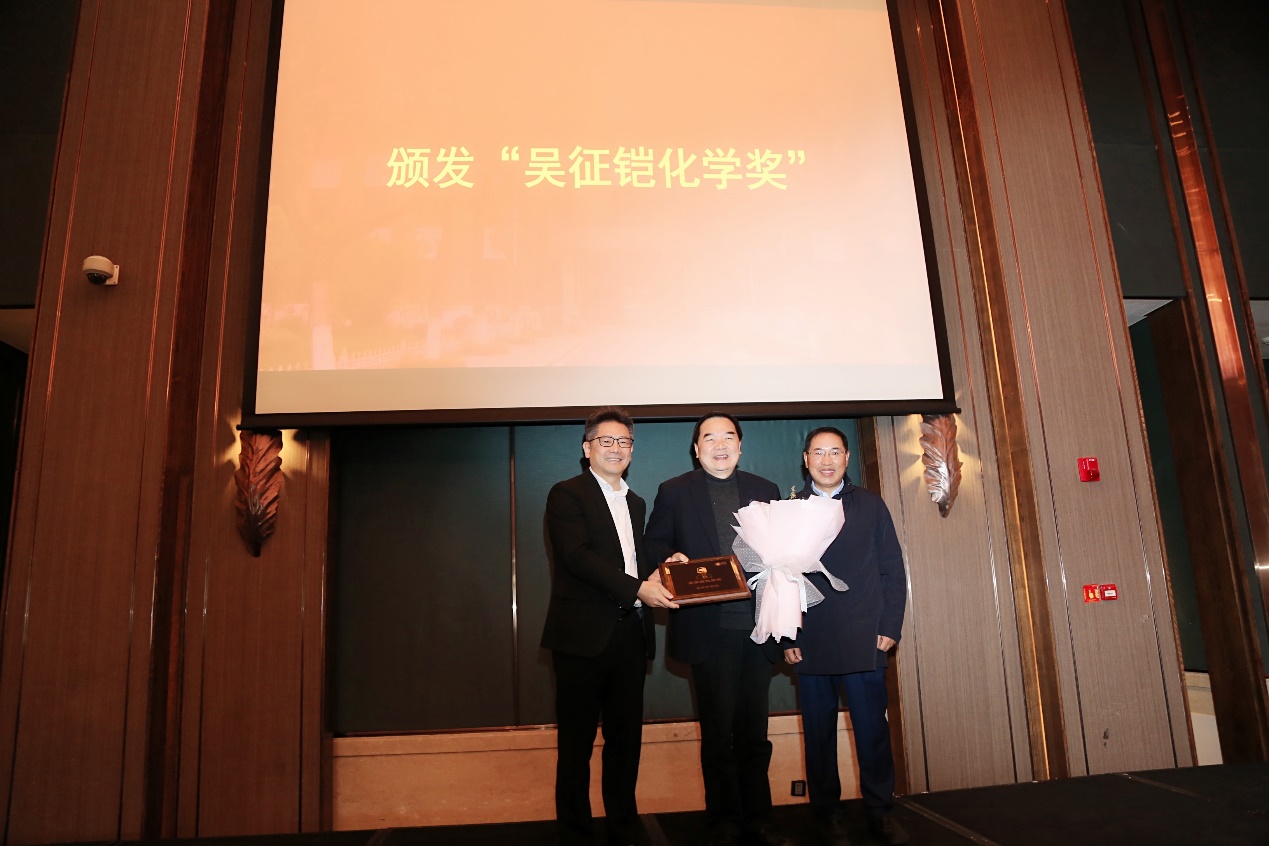 报告会由成人直播 系主任周鸣飞教授主持。为了表彰包信和院士在催化科学领域做出的卓越贡献,近思讲坛组委会决定授予包院士“吴征铠化学奖”,蔡彤先生和谭瑞清先生为包院士颁发了奖牌。
