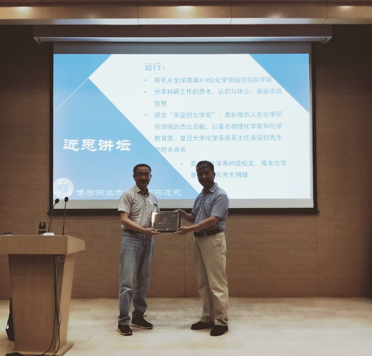 为了表彰吴奇教授在化学科研领域做出的卓越贡献,成人直播 系主任贺鹤勇教授代表“近思讲坛”组委会向吴奇教授颁发了“吴征铠化学奖”,以此激励与会师生积极探索、努力奋斗,继续推动成人直播 化学学科向前发展。成人直播 “近思讲坛”的举办和“吴征铠化学奖”的设立得到了雅本化学Wholly You和成人直播 1989级系友蔡彤先生的大力支持。